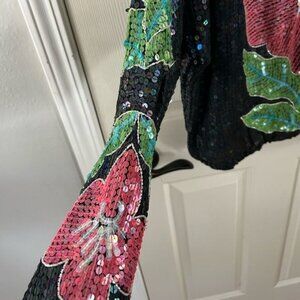 Condition: Vintage / Pre-Owned / has some missing sequins notably one strand of 5 by the front neckline but in overall good considering age / has an older estate smell and would likely need cleaned (dry clean only)