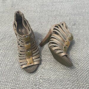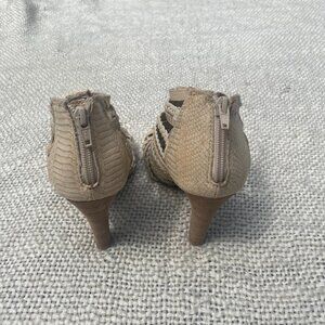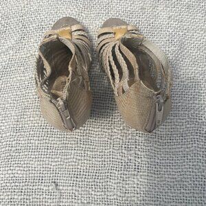 Jeffrey Tyler Faux Snakeskin Tan Strappy Bejeweled High Heel Open Toe Sandals