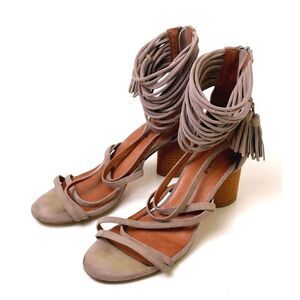 Jeffrey Campbell DESPINA BEIGE SUEDE LEATHER STRAPPY TASSEL ZIP SLINGBACK 8.5 US