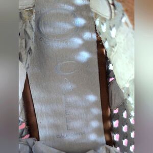 Description: Jeffrey Campbell Kelsey White Tan Wedge Heel 7 Maximalist Hyper Feminine Retro Art To Wear, woven white leather upper with side pull-on tabs, gorgeous sculptural wooden curved heel, minimal wear on the soles, ships with box