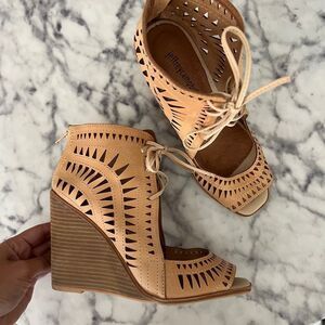 Jeffrey Campbell Rodillo Tan Laser Cut Lace-Up Wedges Size 8.5