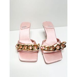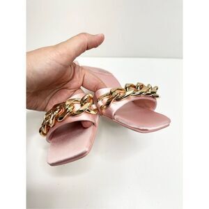 Jeffrey Campbell Sandals Womens Size 5 Pink Satin Chain Slip On Shoes