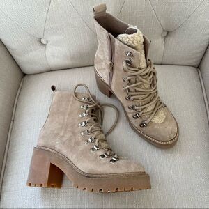Jeffrey Campbell What Faux Fur Trim Lace-Up Boot Taupe US 7.5 MSRP $215