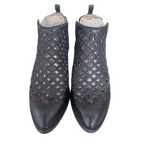 Jeffrey Campbell Women's Black Leather Lattice Cutout Taggart Booties Size 7.5