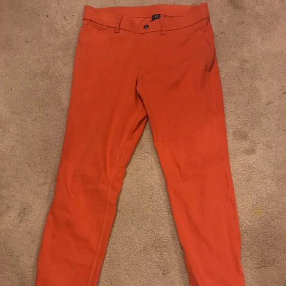 Orange jeggings with zipper at ankles
