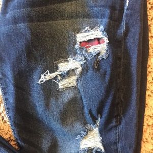 Maurice’s dark wash destructed jeggings with buffalo plaid patchwork. Size small regular length