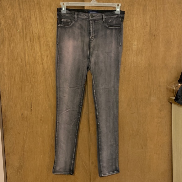 Slightly pinkish grey and black super stretchy pants. Fake pockets in the front. Real ones in the back. Gently used condition.