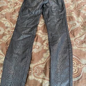Faux leather, semi stretch jeggings. Snake print.