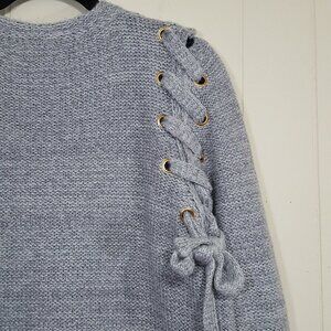 Jella C Frayed Lace up sweater heather gray size S medium weight knit grommets details