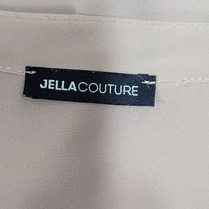 Excellent condition Jella Couture 3/4 sleeve button cuff sheer v-neck beige blouse, size S