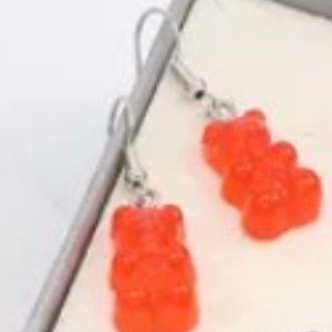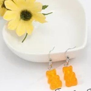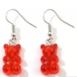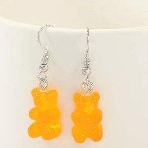 Jelly Candy Look Gummy Bear Earrings with Silver Hooks