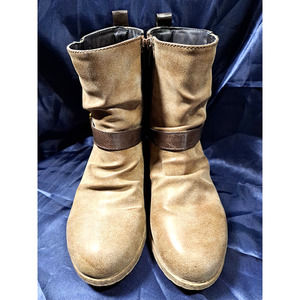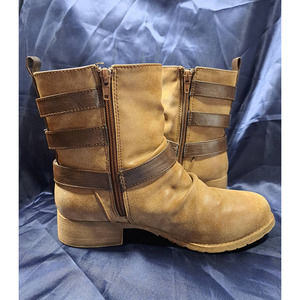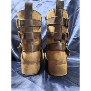 Jelly Pops Rustic Marian Mid-Calf Buckle Boots. Women's Size 6.5. These boots are perfect for any girl who loves a rustic style. They have a feminine touch with 3 buckles and zippers. They are lightly worn and well-maintained with shaft shapers. The color is a lovely light brown that goes with anything. Please check out the pics carefully as they show the details of the boots,