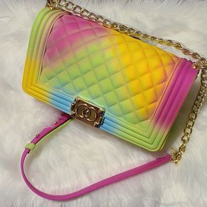 Brand New Gold Link Chain Crossbody Muticolored Jelly Purse