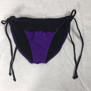 Purple and black lace side ties bikini bottom. This bikini bottom is sure to catch attention.
