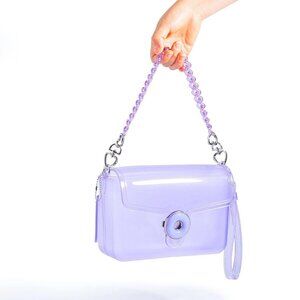 Step into a world of vibrant style and functional elegance with our Jelly Tabby Bag. This eye-catching accessory revives vintage charm with a modern twist, featuring a transparent jelly design and tonal hardware accents that capture contemporary flair. Versatile Carrying Options: Easily switch from a chic wristlet to a hands-free shoulder bag or a stylish crossbody. The detachable wrist strap and adjustable crossbody strap are designed to adapt to your needs, whether you're heading to a casual outing or an evening event. Compact Yet Spacious: Despite its compact size, this jelly bag offers surprising spaciousness, allowing you to carry your daily essentials with ease. With dimensions of 8 3/4" x 5