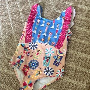 Bright and playful kids swimwear featuring a vibrant mix of colors and fun patterns. Perfect for a day at the beach or pool.