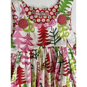 Jelly The Pug Christmas Tree Dress Girls Size 6 Smocked Layered Flowy Christmas