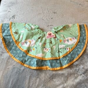 Charming kids matching set by Jelly The Pug. Includes a white top and a colorful skirt. Skirt features playful patterns with yellow and green accents.