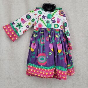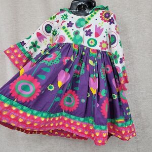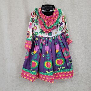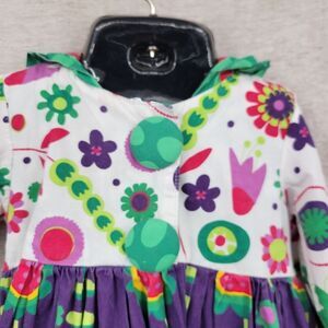 Jelly The Pug Colorful Floral Long Sleeve Hooded Dress Girls 2T