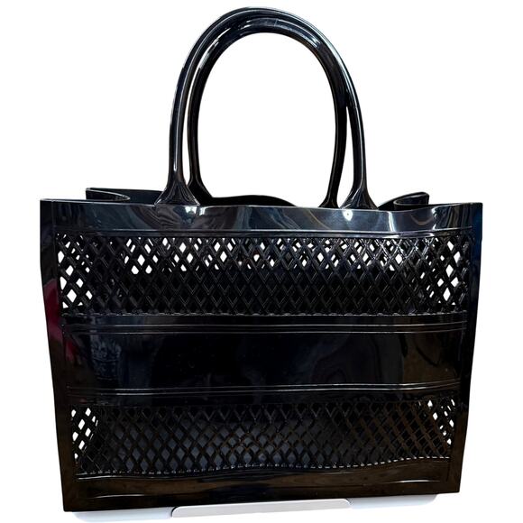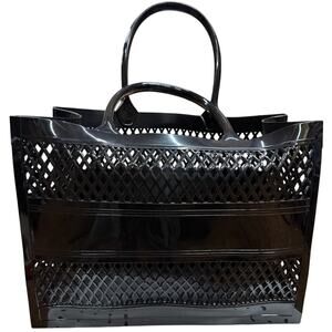 Jelly Tote Large Black Vented PVC Beach Bag Sturdy Handle Carry