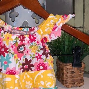 Jelly the Pug Colorful Floral Mixed Print Girls Tie Back Ruffle Dress Size 2T. Excellent used condition.