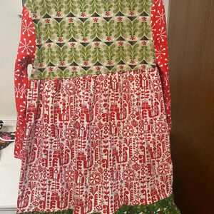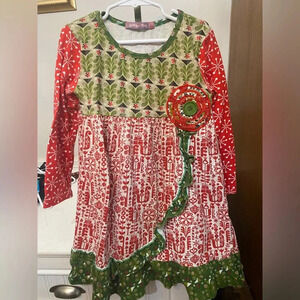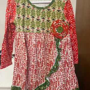 Jelly the Pug Holiday Dress Adorable long sleeve holiday dress with ruffle hem Fabric flower on front Size 7 Smoke free home
