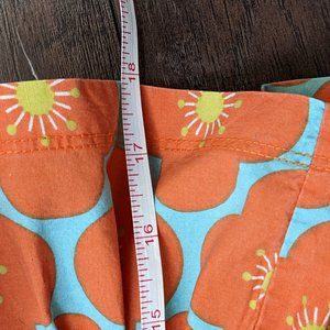 A whimsical mix of patterns including pirate ships and ginkgo leaves in teal blue and orange.