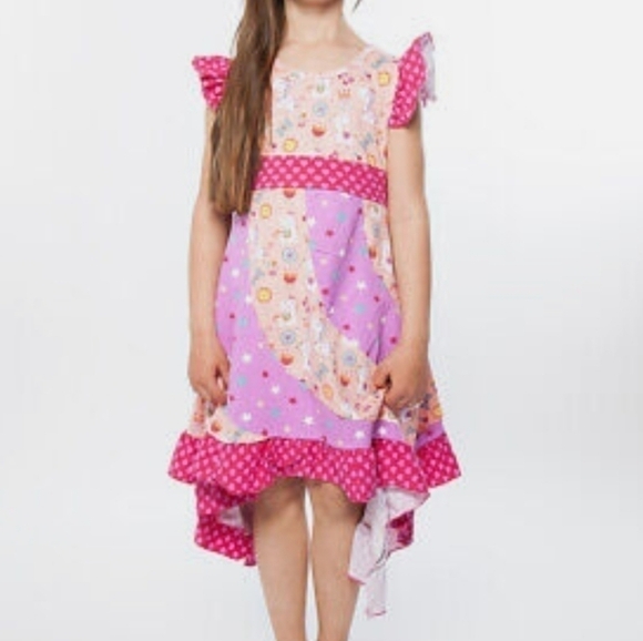 Girls Jelly the pug Unicorn pink bri mischa pricilla jenny flo girls ruffle dress in good used condition.