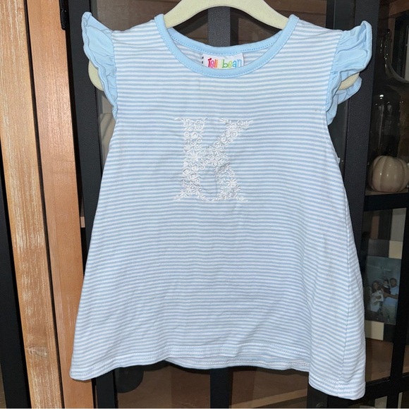 Jellybean K embroidered monogram initial dress top ruffles toddler girl flowers