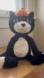 Adorable Jellycat plush cat. Black fur with cream accents. Cute orange hat on top.
