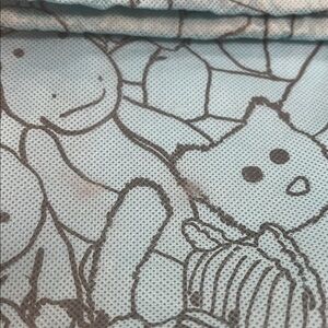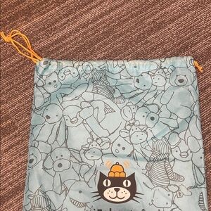 Teal drawstring bag with fun animal design. Ideal for storage or travel of toys. See all pictures for condition issues , in preowned condition, smoke free home.