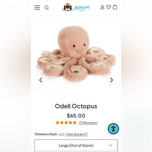EUC Jellycat Odell Octopus in size “large.” Other sizes available in my closet!