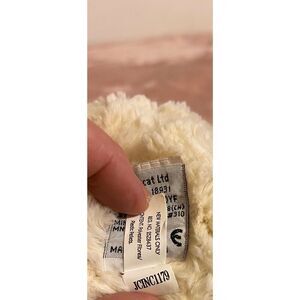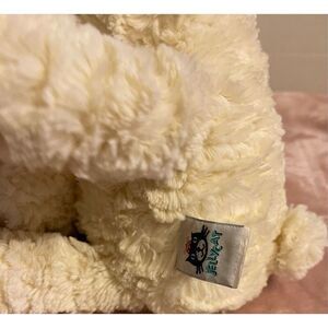 Adorable shaggy soft Jellcat bunny with pink nose.
