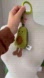 Adorable avocado plush toy with a green ring. Features a smiling face and brown legs.