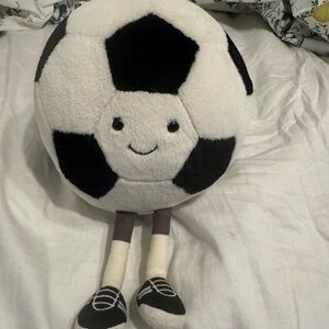 Sold out everywhere! Soft and cuddly soccer ball plush. Features a friendly smile. Perfect for play and snuggles.