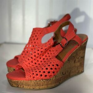 Jellypop Aprilia Coral Woven Cork Wedge Sandals Women’s 7.5M Summer Shoes boho