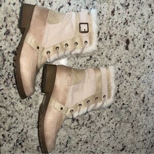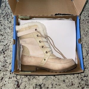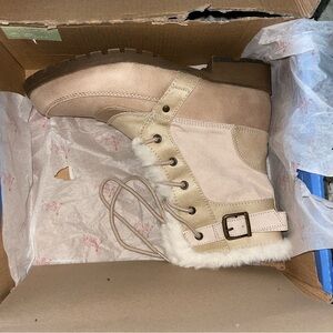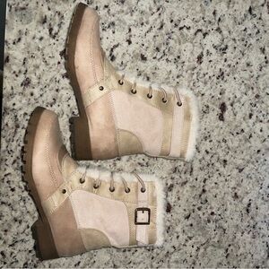 Jellypop Chanda Size 9 Bone Distressed Faux Suede Faux Fur Lace Up Boots Booties