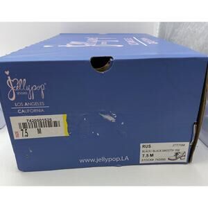 Great pair of Jellypop Los Angeles Chunky Heel Black pumps. Style is RUS. Women's size 7.5. Tie closure, faux leather, plaid fabric inside. Try on, never worn. Comes with box, box is in fair condition. Shoes in excellent condition. Heels are solid, rubber, and have good weight to them. No obvious flaws. Please see pictures for measurements and condition.