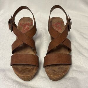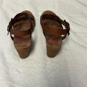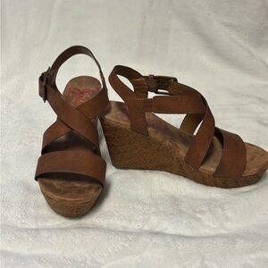 Jellypop memory foam brown wedges. Size 7.5. Great condition. Leather straps with buckle. Cushioned soles.