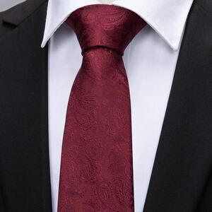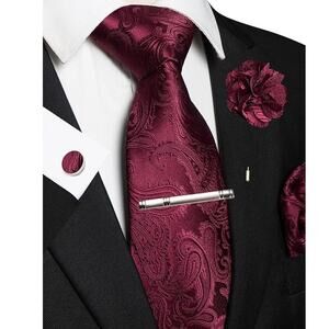 Jemygins Burgundy Paisley Tie Lapel Pin Cufflinks Tie Clip 4 Piece Set