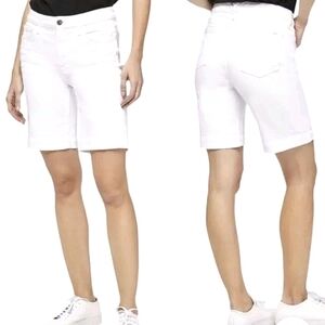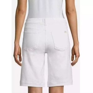 Jen7 by 7 For All Mankind Bermuda Shorts are a classic style of Bermuda shorts with a gap-free contoured waistband and a crisp white wash.