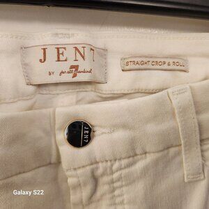Jen 7 White "straight crop and roll" Jeans. NWT. Size 8. No rips/stains or tears. Material: Cotton/Lyocell/Rayon/Elastane mix, has stretch. Mini roll on the bottoms. Waist: 14.5 inches. Top to bottom: 40 inches. Rise: 11.5 inches. Inseam: 28 inches. Smoke free home. No odors. All offers are welcome. Thank you!