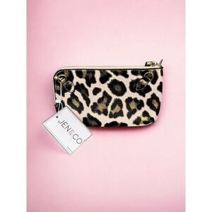 Jen And Co Zippered Wallet Blush Leopard Gold Metallic Twist Lock Vegan NWT
