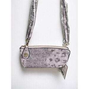 Jen & Co Kendall Crossbody Wristlet Twist Lock Lavender Metallic Shimmer Leopard