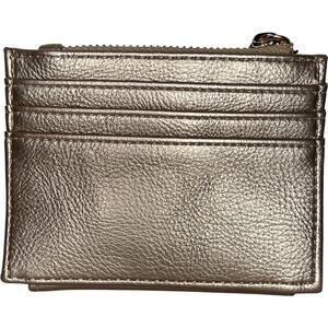 This compact accessory is perfect for those who value convenience and organization. Sam boasts plenty of card space, allowing you to keep your essentials neatly organized. The snap closure ensures that your cards stay securely in place. The card/ID holder conveniently folds out for easy access, while the top zipper closure adds an extra layer of security to your belongings. Adorned with gold-tone hardware, Sam exudes elegance and sophistication. Crafted from luxurious vegan leather, it offers both durability and ethical style. With dimensions measuring 5"L x 4"H, it's perfectly sized to slip into any handbag or pocket.