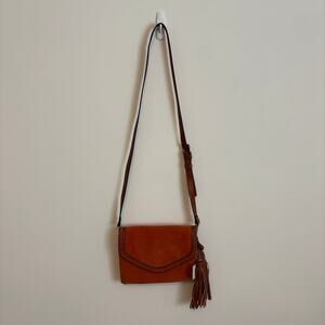 The Sloan by Jen & Co is a versatile vegan crossbody and clutch in rich burnt orange faux suede. Designed with an elegant whipstitch trim and tassel accent, it transitions seamlessly from day to night. Features dual magnetic-snap compartments, interior card slots, and an adjustable/removable strap for multiple styling options. New with tags, RTP $52.