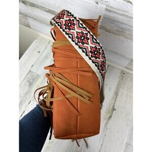 Jen & Co Sadie bag, vegan leather crossbody, brown brick fringe purse, Aztec strap boho bag, women’s festival crossbody, Jen & Co women’s accessories, southwestern boho purse, fringe shoulder bag, vegan brown handbag, new Jen & Co Sadie crossbody