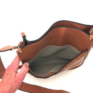 Jen and Co Pippa Brown Vegan Leather Stitch Accented Crossbody Bag