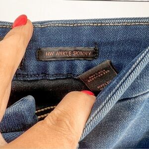 These high-rise skinny jeans from Jen7 are tailored from comfortable stretch denim and detailed with an asymmetrical linear stitched hem design. A perfect alternative to your everyday skinnies.