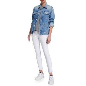 Elevate your wardrobe with these stylish Jen7 by 7 for All Mankind skinny cropped jeans in a sleek white color. The high-rise design and 5-pocket style with button and zipper accents make for a flattering fit, while the cotton/polyester/viscose/elastane material composition provides both comfort and stretch. The jeans are machine washable for easy care and feature a light fabric wash for a subtle finish.